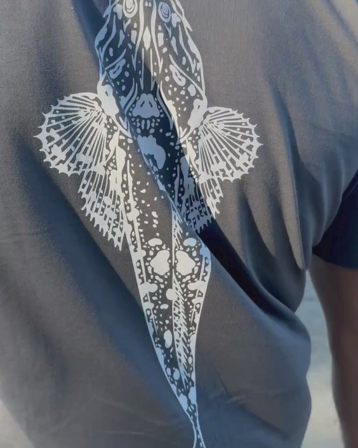 Featuring a hand-printed Flathead fish design on the back and a subtle Anchorline logo on the chest, this washed grey cotton t-shirt is the perfect choice for any fisherman, outdoorsman, or lover of coastal living. Whether you’re out on the water or relaxing onshore, it’s a versatile everyday staple.