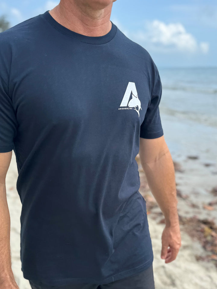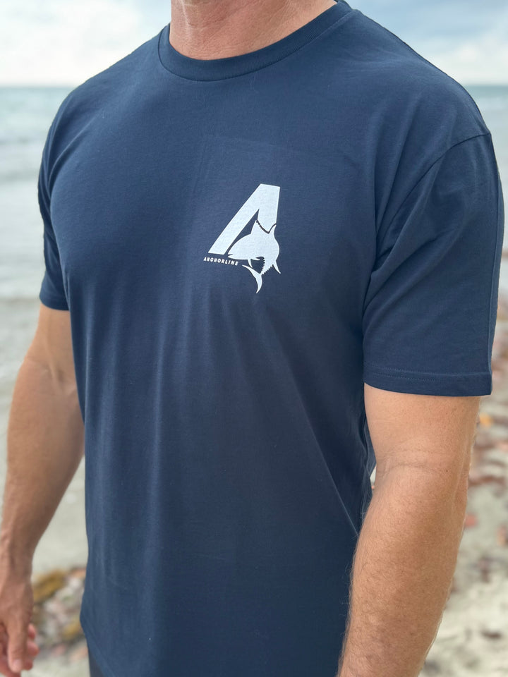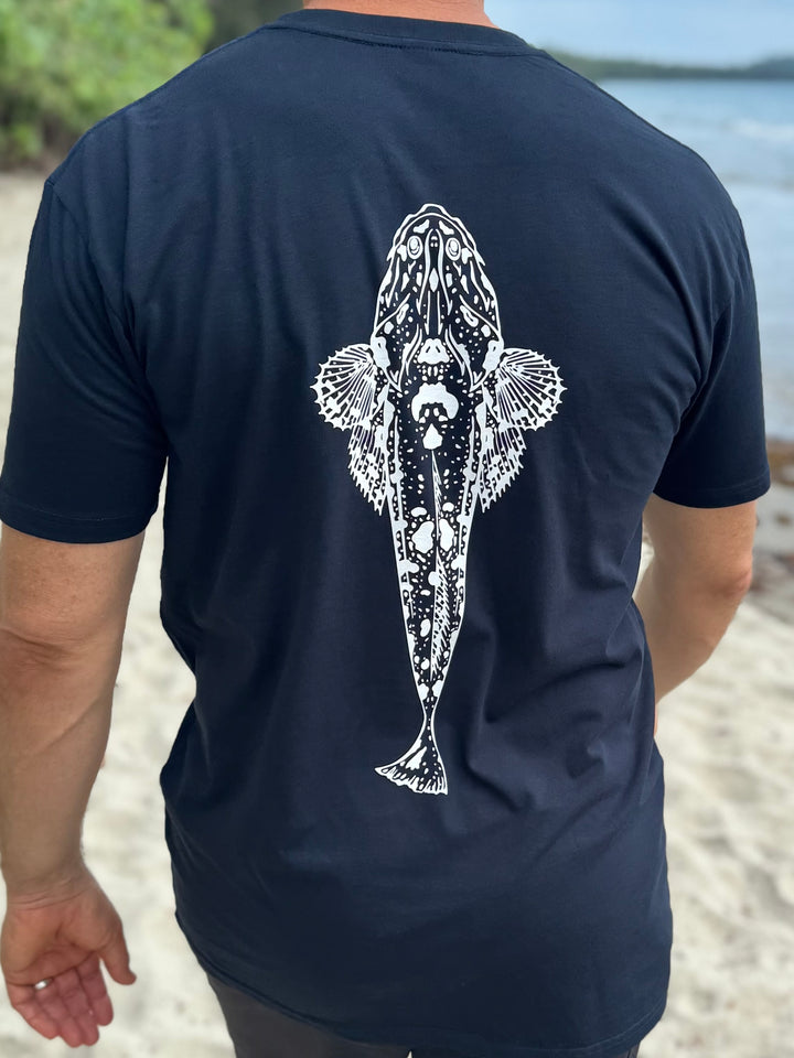 Featuring a hand-printed Flathead fish design on the back and a subtle Anchorline logo on the chest, this dark navy cotton t-shirt is the perfect choice for any fisherman, outdoorsman, or lover of coastal living. Whether you’re out on the water or relaxing onshore, it’s a versatile everyday staple.