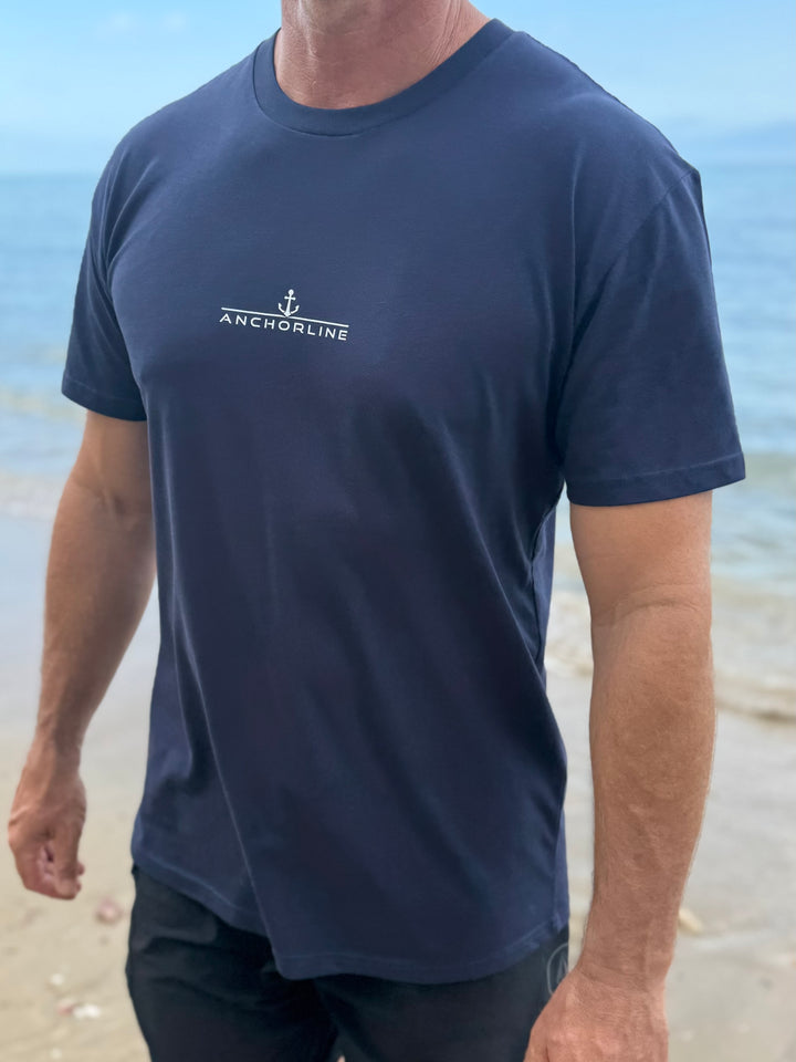 Featuring a hand-printed Flying Fish design on the back and a subtle Anchorline logo on the centre chest, this midnight blue cotton t-shirt is the perfect choice for any fisherman, outdoorsman, or lover of coastal living. Whether you’re out on the water or relaxing onshore, it’s a versatile everyday staple.