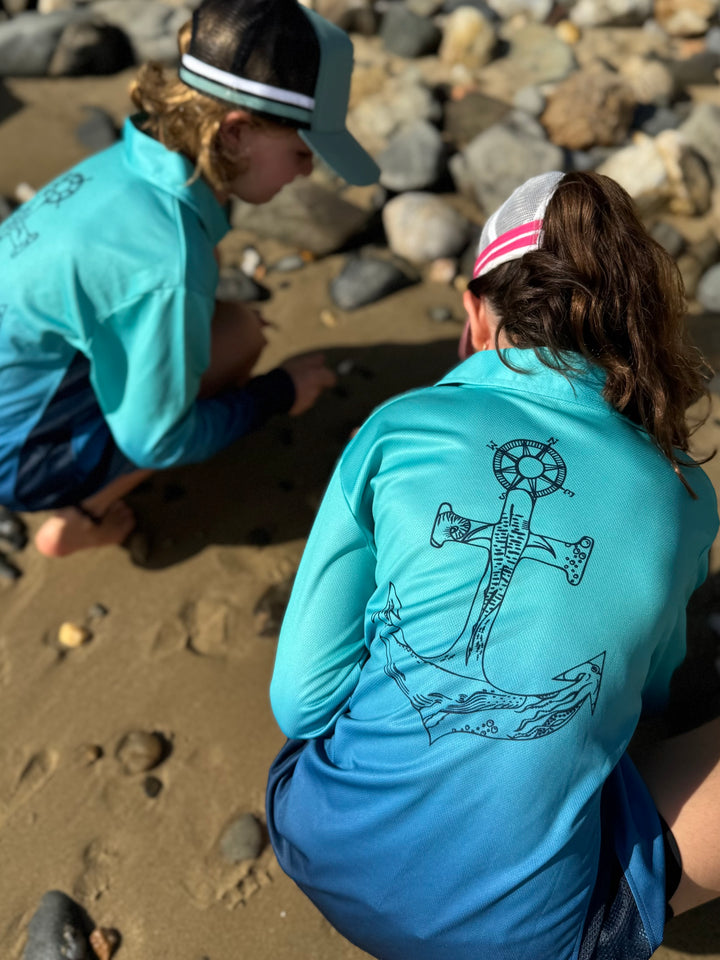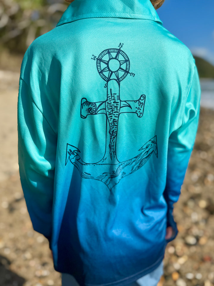 Australian Made Kids Fishing Shirt – Blue Anchor Print