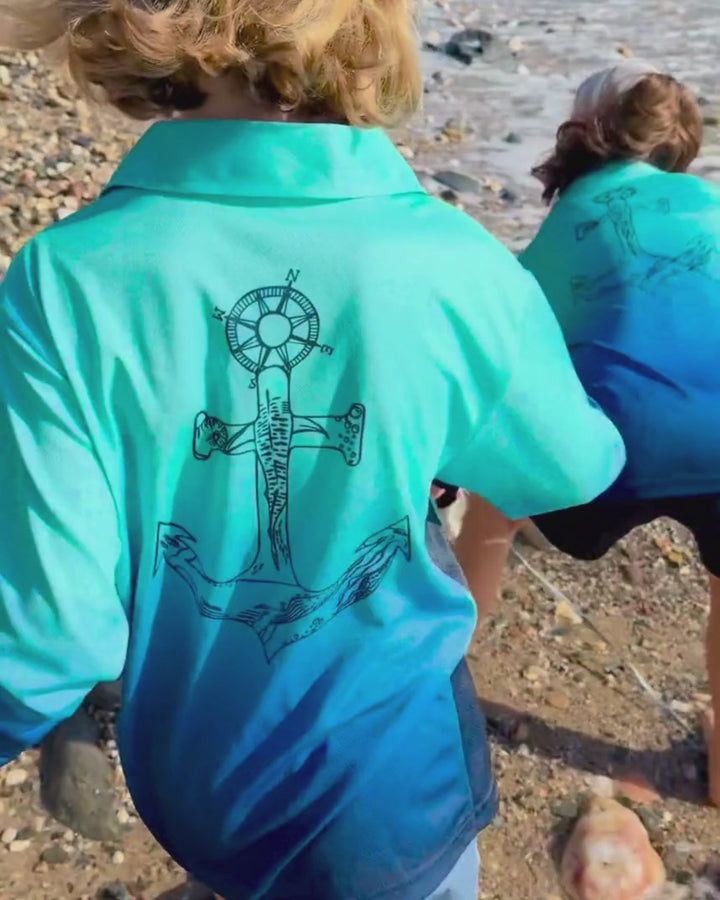 NEW Kids Fishing Shirt - Blue Anchor Print